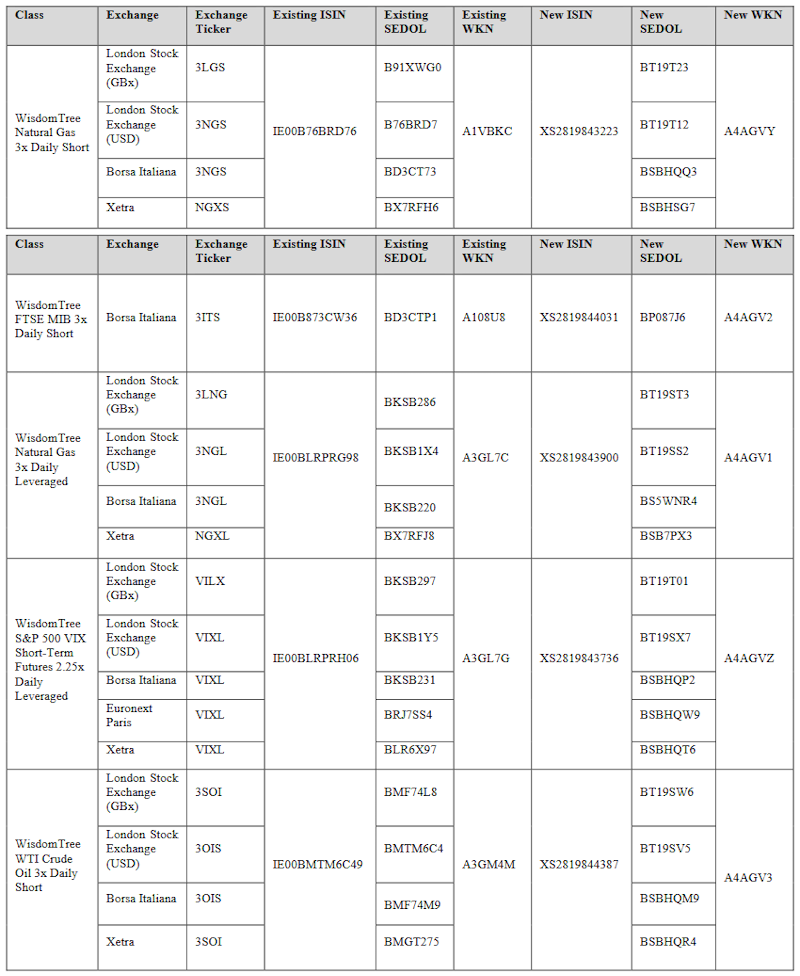 WisdomTree Multi Asset Issuer Public Limited Company announces that pursuant to Condition 17.2, it will be effecting a split at the close of business on 19 July 2024 of the following class of Collateralised exchange traded product (“ETP”) Securities: